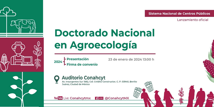Presentación del primer Doctorado Nacional en Agroecología en México enero 23 | 1:00 pm Género: presentación Fecha: 23 de enero de 2024 Hora: 13:00 horas (zona centro) Or...